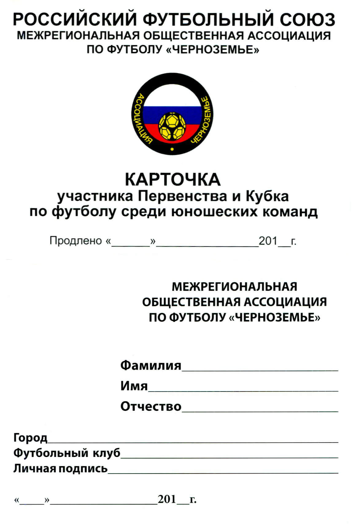 Бланк - Карточка участника Первенства и Кубка по футболу среди юношеских команд МОА "Черноземье"