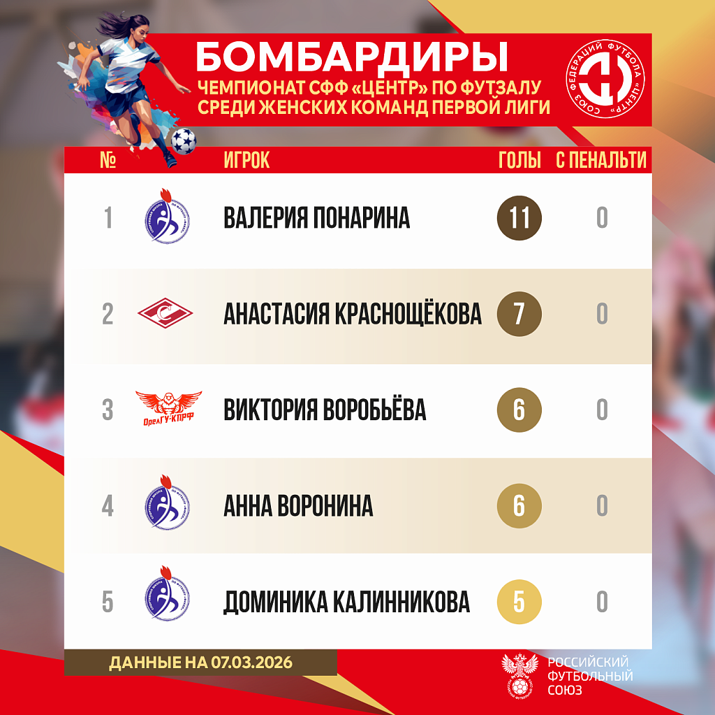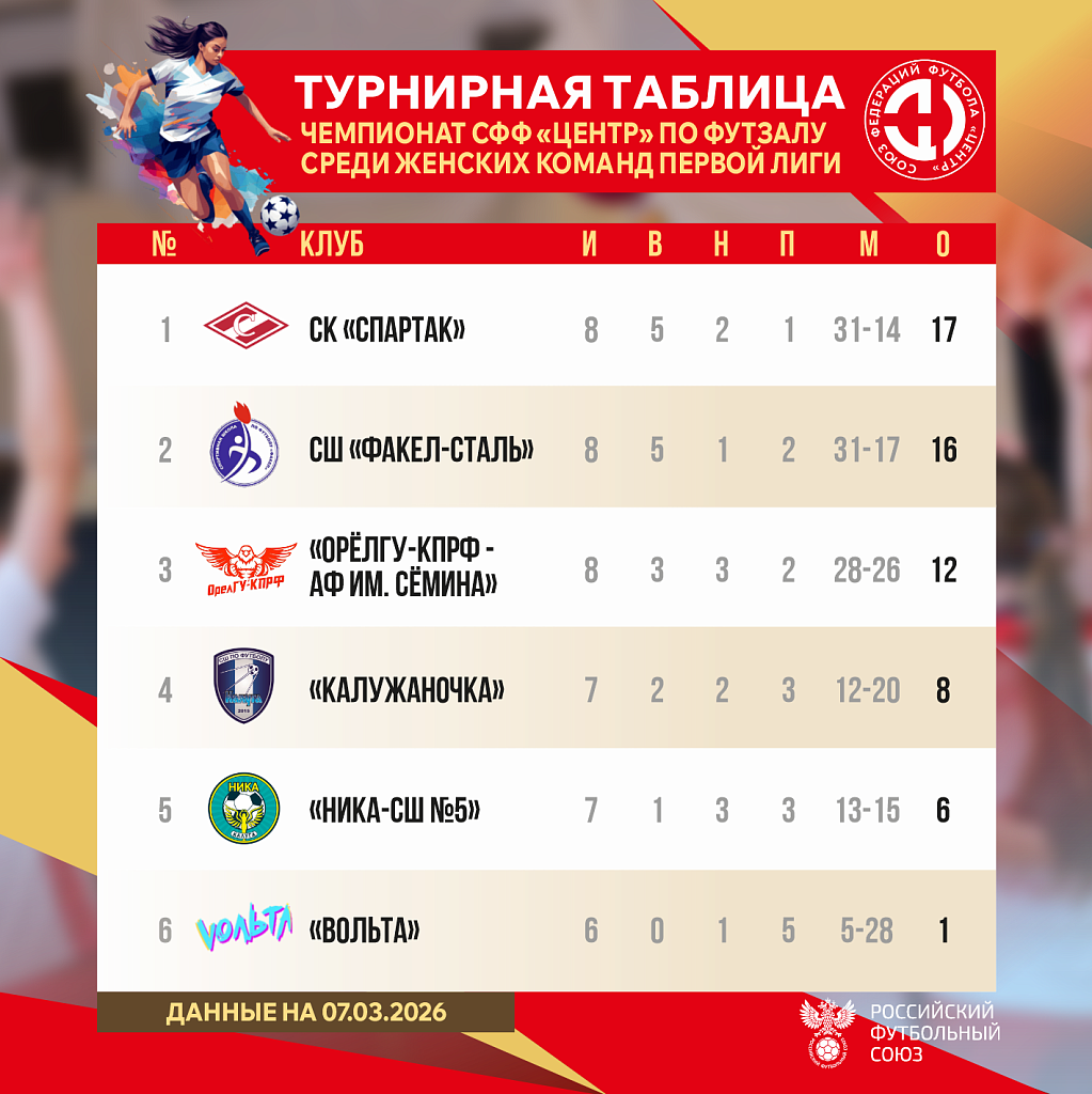 7 марта в Туле состоялся матч восьмого тура Первенства Центрального Федерального округа и Южного Федерального округа (СФФ «Центр») в рамках межрегионального этапа всероссийских соревнований по футзалу среди женских команд Первой лиги сезона 2025-2026 годов.
